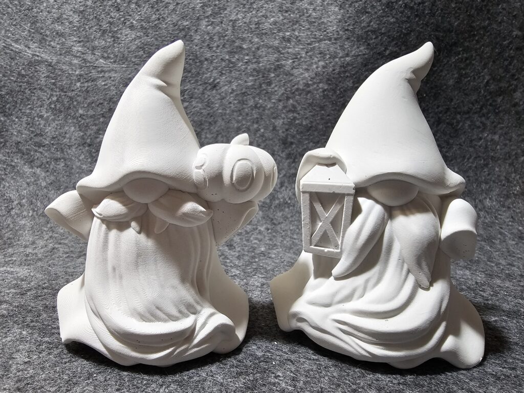 Die Figuren sind jeweils ist ca. 10 cm hoch, ca. 8 cm breit und ca. 6 cm tief. Die Wichtel wiegen jeweils ca. 250g.