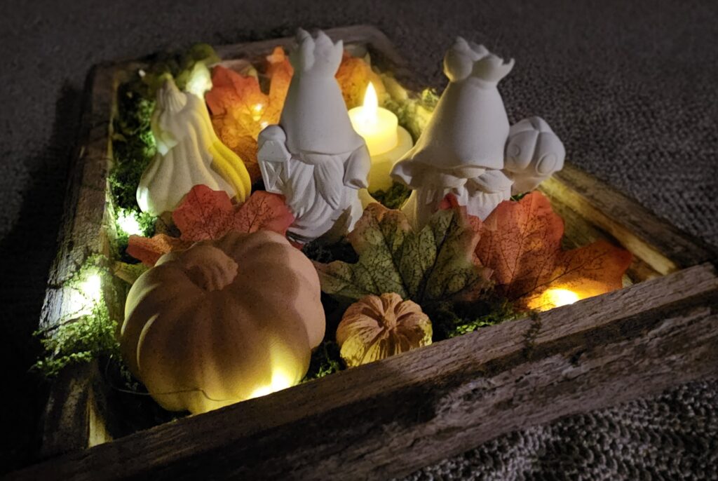 Dieses Produkt wird OHNE Dekoration oder Licht verkauft. Auf Wunsch melde Dich gern zu Kürbissen oder anderer passenden Dekorationen.